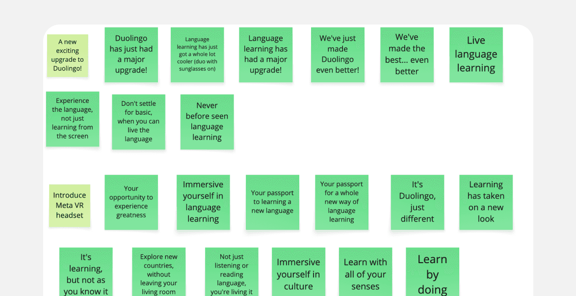 I looked into Duolingo’s brand messaging to understand how they keep things playful, clear, and user-focused. Their copy is short, friendly, and full of energy—so I used that as a guide for writing my own.