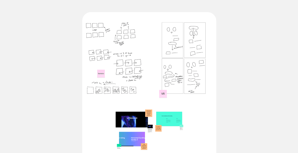 My idea development started with creating animation frames to incorporate into the site. While I did some wireframing, I later realised that I should have dedicated more time to it, as I later had to restructure the layout due to spacing issues and excessive white space. Learning Rive, Spline and Lottie animations (and Webflow) was my main focus, which led to wireframing going on the back-burner. However, after having to rebuild parts of the site to address these challenges, I've gained a much deeper appreciation for the wireframing process.