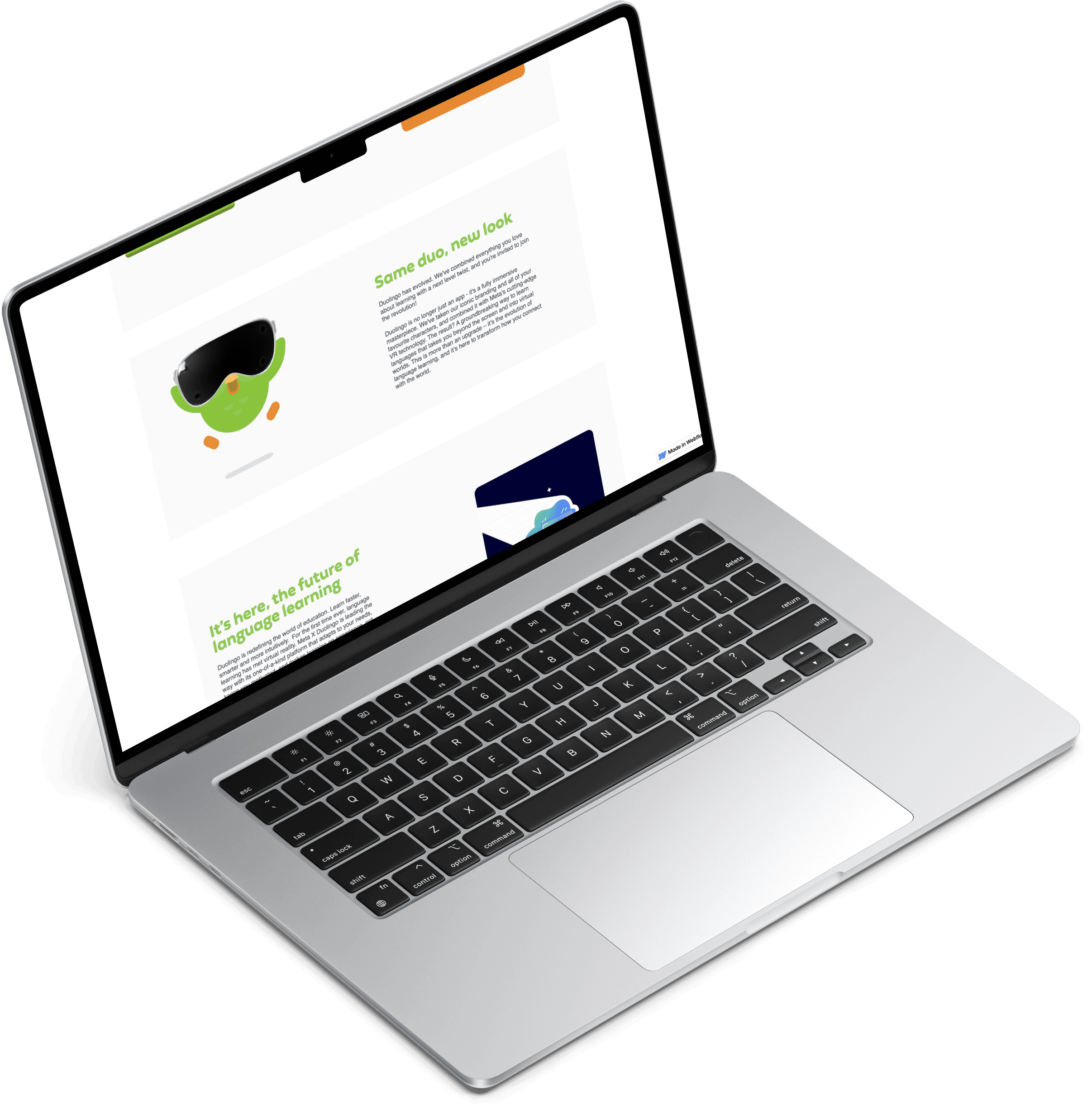 An interactive, motion site showcasing the future of language learning with Meta x Duolingo VR