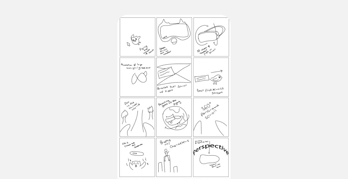 This project didn’t start with a clear structure, which led to a lot of back and forth—but also opened up space to explore. With the freedom to experiment, I learned by doing—trying out different ideas, adjusting layouts, and improving animations as my skills developed in Webflow, Rive, and Lottie. Key sections like the VR headset interaction and animation flow evolved through constant iteration.