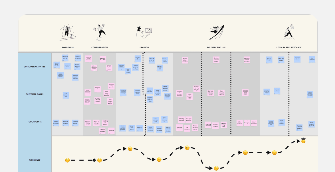 Customer journey mapping played a key role in shaping our approach. By visualising the user’s emotional and functional experience across each touchpoint, we were able to identify specific pain points within the original recruitment flow. This method helped us step into the user’s shoes, highlighting where confusion or friction occurred, and informed decisions around layout, copy reduction and flow structure to create a more seamless and engaging sign-up experience.