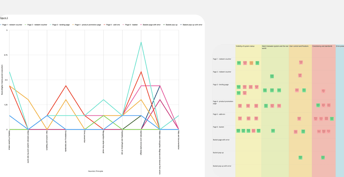 We used heuristic mark-ups, based on Nielsen’s 10 usability principles, to evaluate each high-fidelity screen. This helped us spot what was working and where improvements were needed. We focused on things like clarity, consistency, and reducing cognitive load. For example, aesthetic and minimalist design guided our copy reduction, while visibility of system status helped improve elements like discount banners. These mark-ups helped us select the strongest parts of each design and merge them into a final, streamlined prototype.